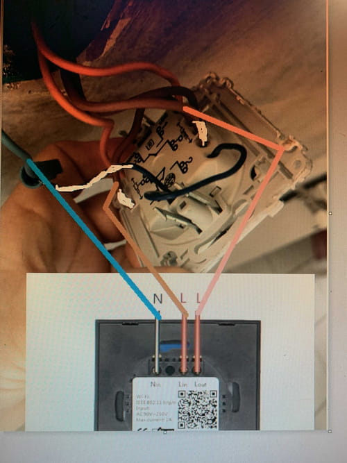 Essayant de rendre ma maison toujours plus domotisée j’ai donc décidé d’installer un interrupteur sonoff touch pour contrôler mes lumières extérieur. Cet interrupteur est composé d’un interrupteur pour la lumière extérieur et l’autre un va et vient pour la lumière du salon (voir image). J’ai débranché les fils et j’ai donc commencé par mettre un sucre pour supprimer le va et vient du salon puis raccordé mon sonoff touch comme indiqué sur la notice avec les trois fils restants mais sans réussite je fais donc appel à la communauté aujourd’hui pour m’aider à résoudre ce problème