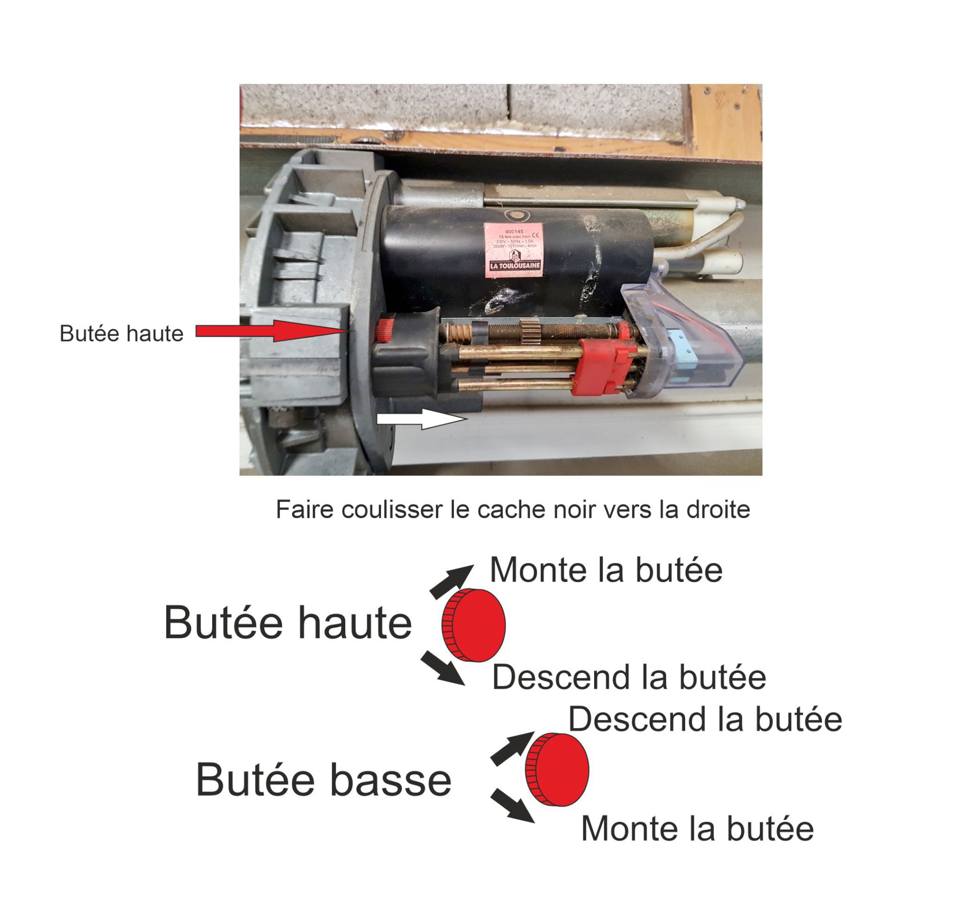 Posez votre questionCa date d'un an mais pour ceux qui cherchent encore , car j'ai eu beau chercher j'ai fait peau de balle , la doc La Toulousaine a ete remaniee et affiche les nouveaux systemes de Fin de courses qui n'ont plus rien a voir avec ce vieux systeme.