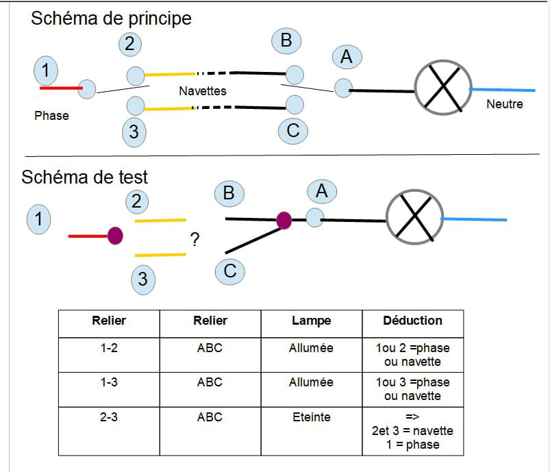 pour le va-et-vient, je pense que c'est bien le rouge et les 2 blancs.