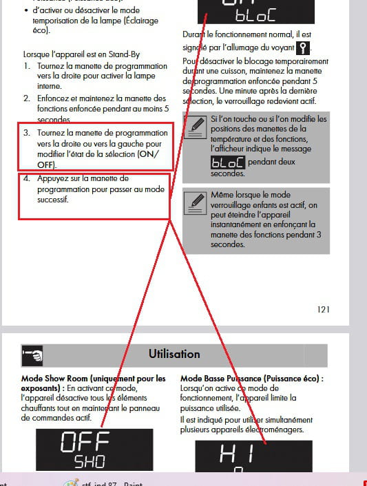 depuis hier soir mon four Smeg SFP480X n’est plus utilisable. Il n’a pas fonctionné récemment mais hier j’ai remarqué qu’un voyant clé était affiché. Après consultation de la notice j’ai pensé que c’était le mode verrouillage enfant. J’ai donc suivi la procédure (maintien de la manette de fonctions enfoncée pendant au moins 5 secondes, puis 2 bips se font entendre), mais rien ne se passe… je n’ai accès à aucune proposition et l’écran affiche « bloc » sans rien me proposer d’autre. J’ai également constaté que s’affiche parfois « SHO », j’ai donc pensé que c’était le mode showroom (mode exposition) car effectivement tous les éléments chauffants sont désactivés. Cependant malgré le suivi de la procédure de déverrouillage c’est un échec… le maintien enfoncé de la manette de fonctions ne me propose aucune option de désélection… après quelques recherches le « SHO » correspond-il vraiment à Show room ou à safety hot oven (alors qu’il est froid et n’a pas servi) ? Si c est le cas, est-ce un problème de capteur ?