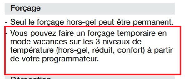 EG203P marche mais en hors gel je peux forcer la marche au thermostat