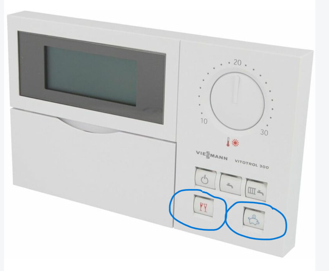 Bonjour j'ai un comportement étrange depuis 1 mois, deux boutons de ma commande Vitotrol 300 ne fonctionnent plus (il s'agit du bouton réception et économie), par contre ils sont opérationnels depuis la chaudière à la cave (Vitodens 200-W) (cf photos) , ce qui n'est pas très pratique. Le reste des boutons sont fonctionnels à partir de la commande Vitotrol 300. (cf photo)