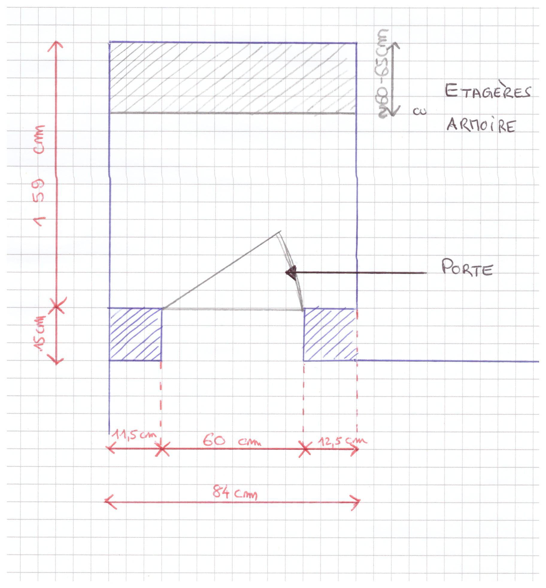 Voici des photos de l'espace ainsi qu'un croquis avec les cotes que j'ai pris.