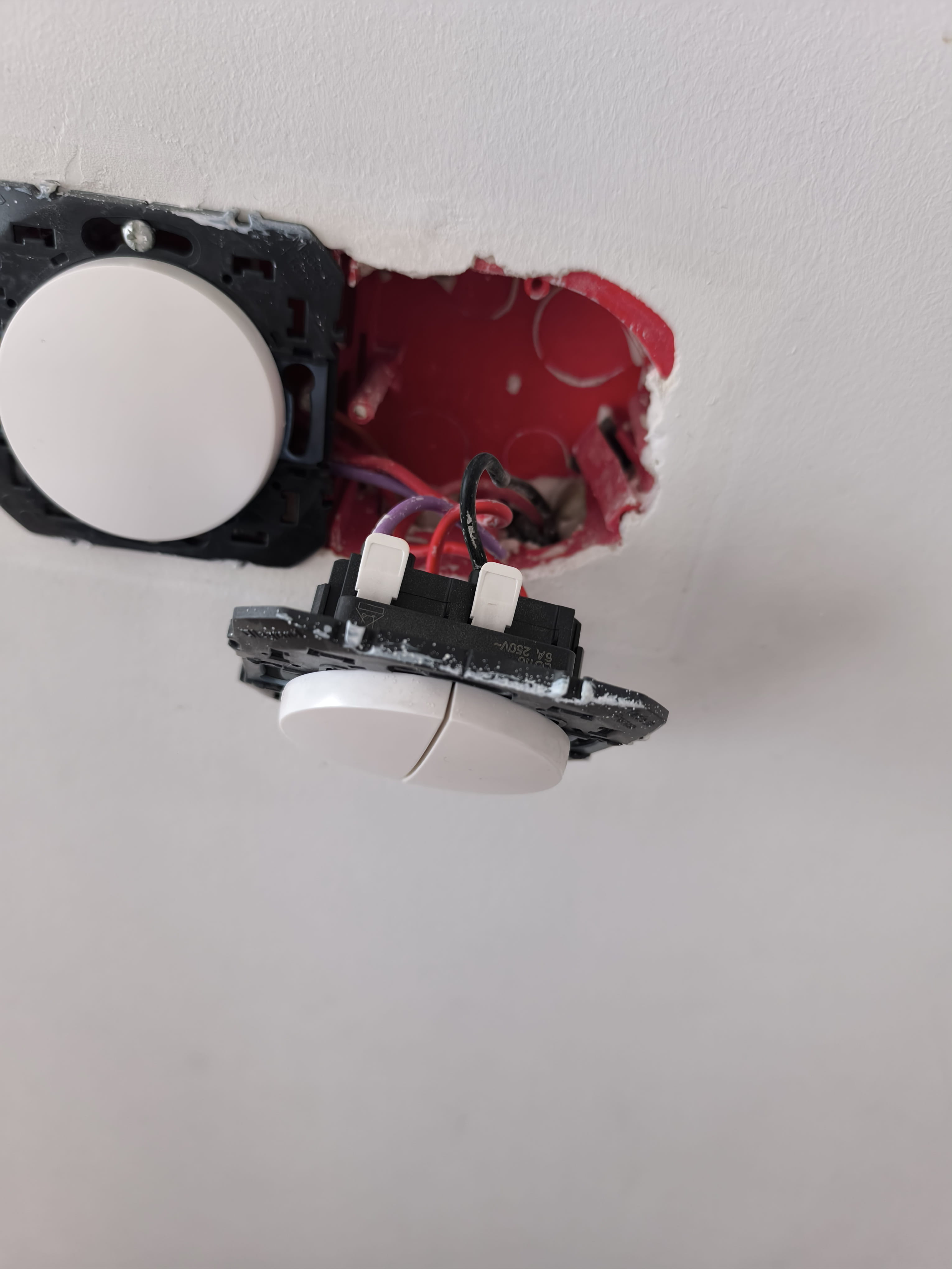 J'ai actuellement un interrupteur double qui commande un ruban LED au plafond (bouton poussoir de gauche) et un plafonnier (poussoir de droite).