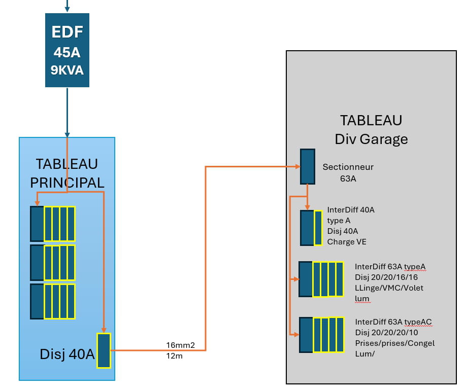 Pour un borne de recharge il est conseillé de mettre un 40A