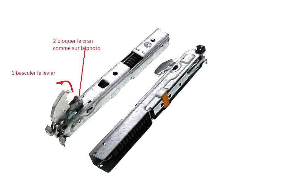 Je n'arrive pas à remettre la porte de mon four. Il me semble que les charnières sont bloquées à l'intérieur du système et je n'arrive pas à le faire ressortir.