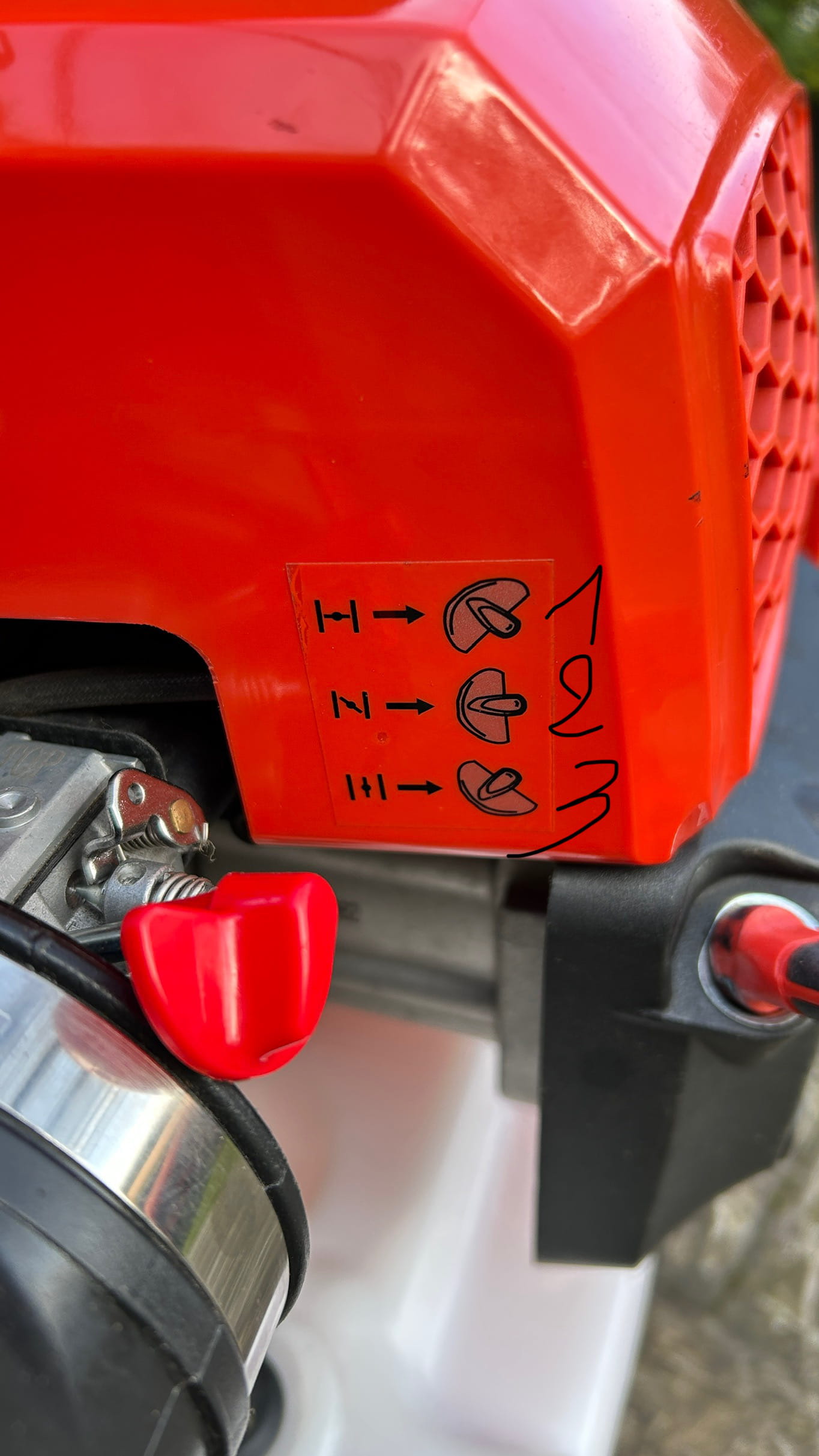 Je sais avant qu’il faut que j’appuie 6 à 7 fois sur la pompinette pour que l’essence arrive vers le moteur ensuite sur la poignet de l’accélérateur, je dois lever un petit clapet pour que la gâchette de la poignet soit enfoncée.