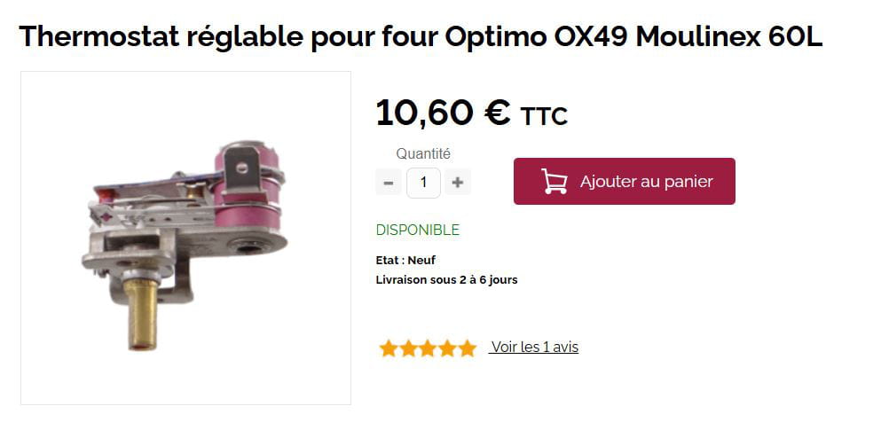 Fonctionnement Thermostat mini four Moulinex Optimo 60L