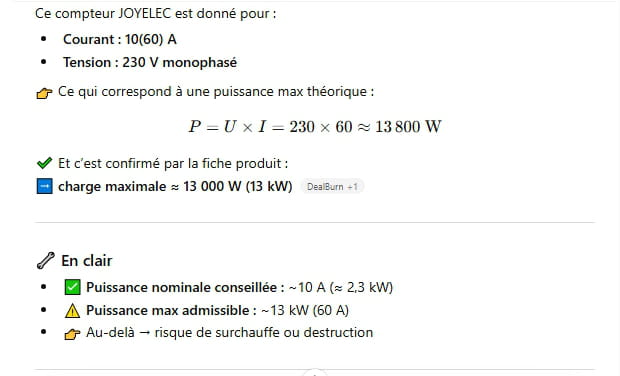 Justement, c'est entre ce 10A (2300W) et ce 60A (13000W) que ce n'est pas clair.