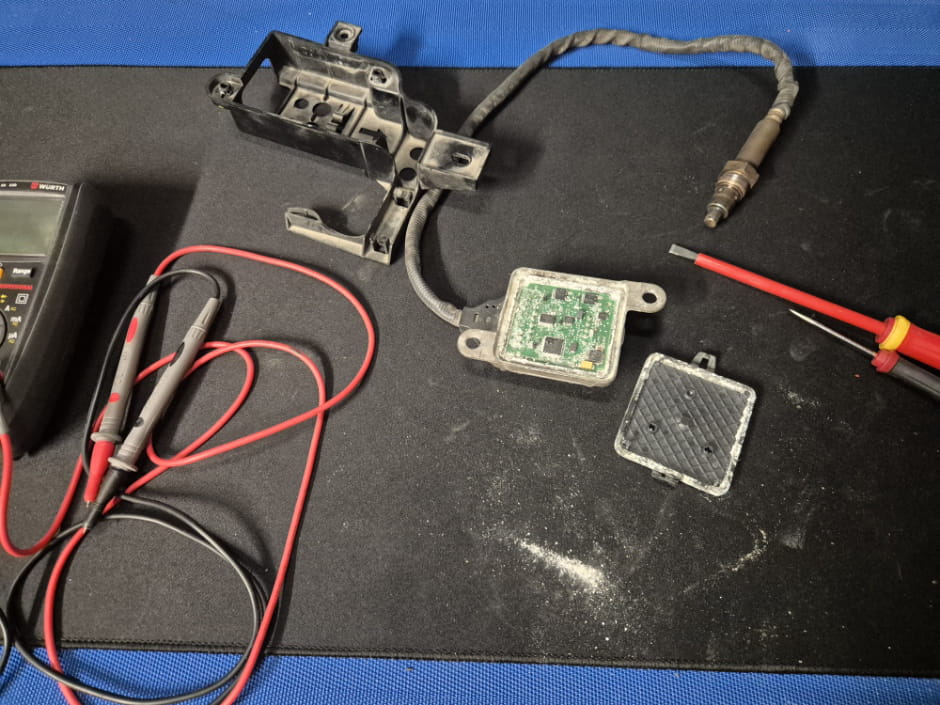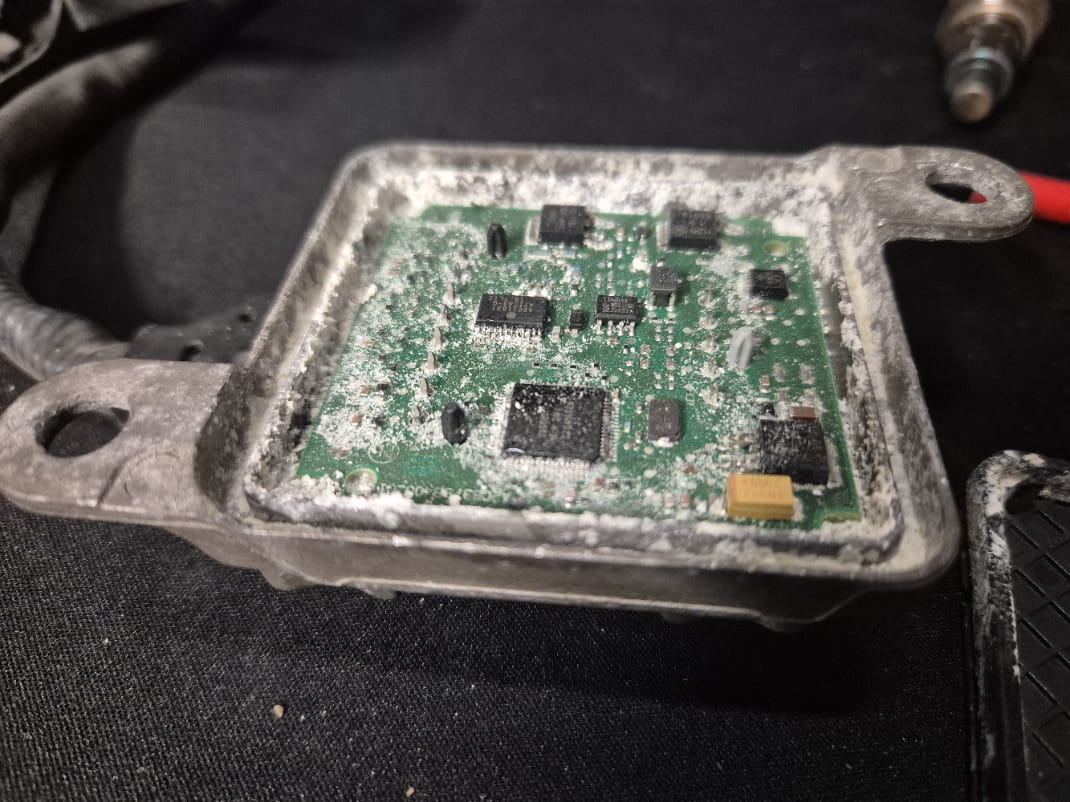 J'ai donc procédé au démontage du capteur NOX et de la carte électronique. Suite au démontage, l'état de la carte est extrêmement dégradé.