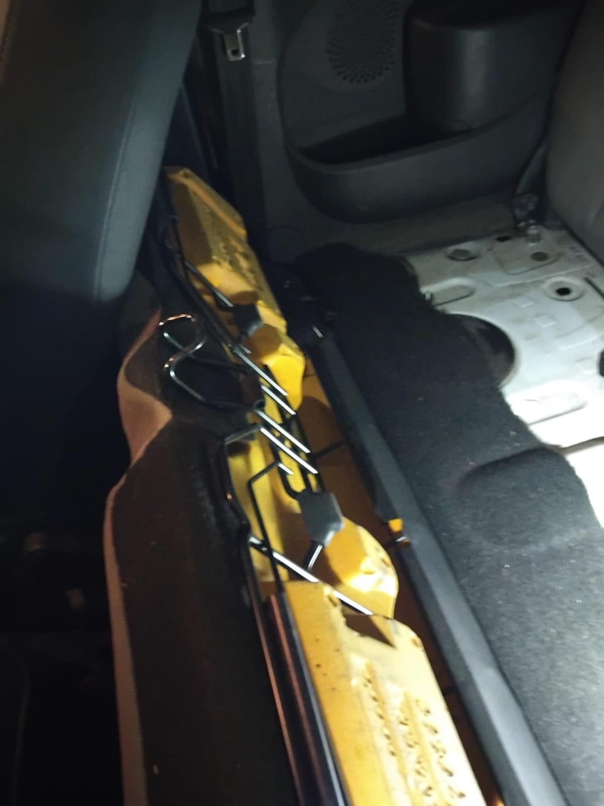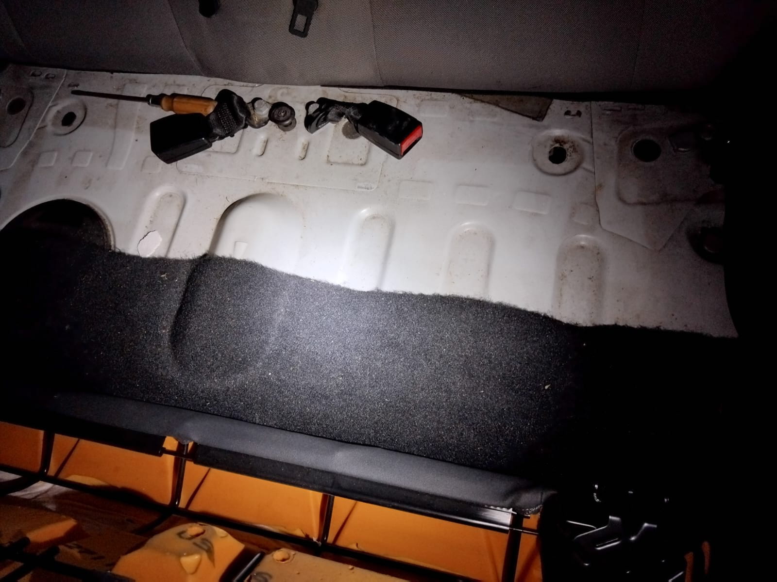 J’ai joint des photos de la sangle que je pense être d’origine (sans certitude) ainsi que des deux parties de la banquette (celle qui se soulève et le point d’ancrage sur la caisse).